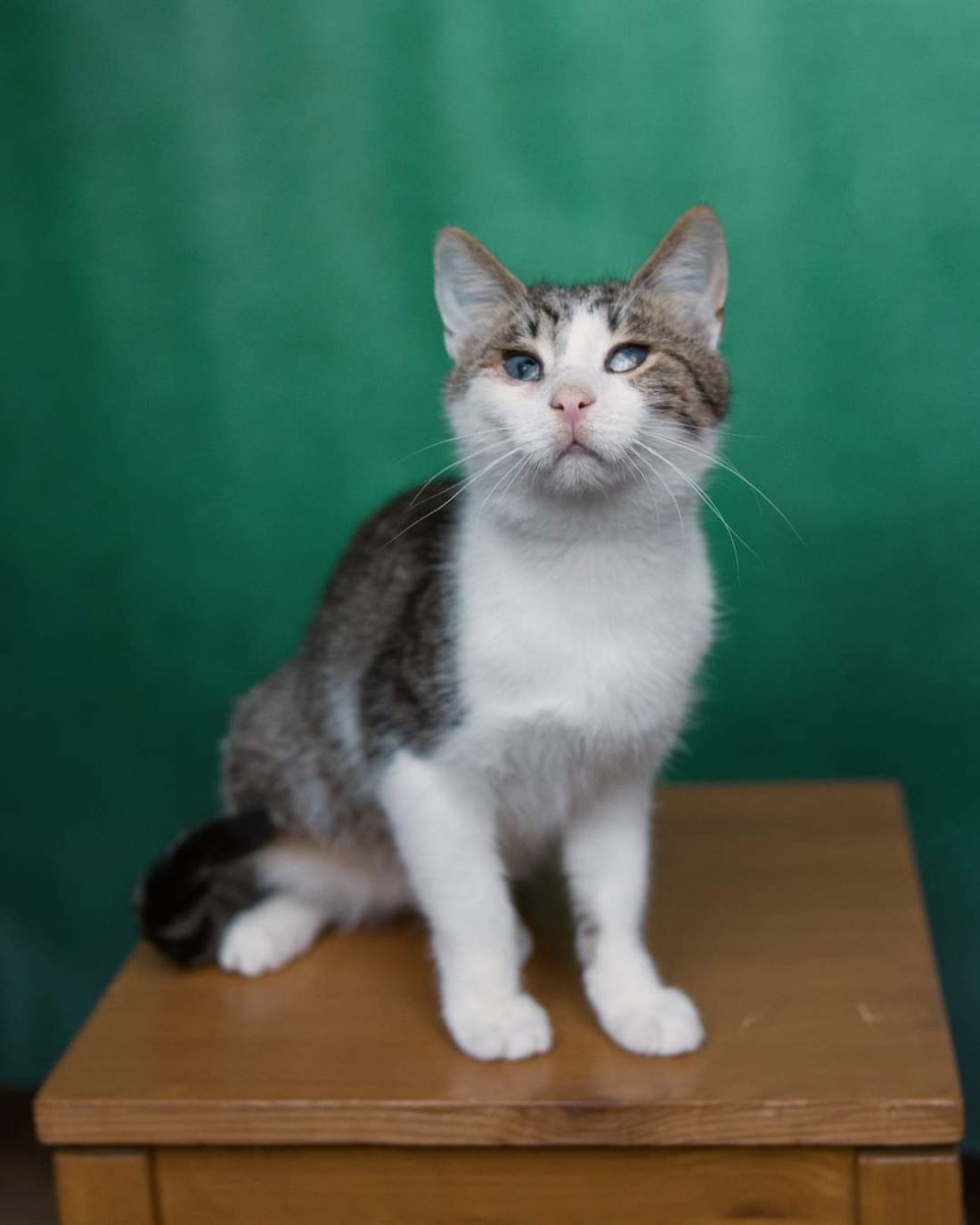 Młody kociak trafił do nas ze schroniska w Radomiu. Czy koty, które słabo widzą, mają szansę na adopcję? Niestety, mniejszą niż te zdrowe... Dlatego, ze względu na chore oczy, Agregat trafił do nas – do Fundacji Ja Pacze Sercem, gdzie koty niedowidzące i niewidome są zawsze zaopiekowane!