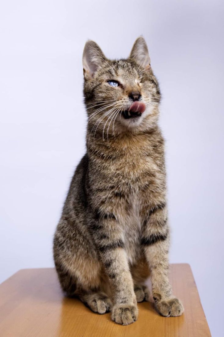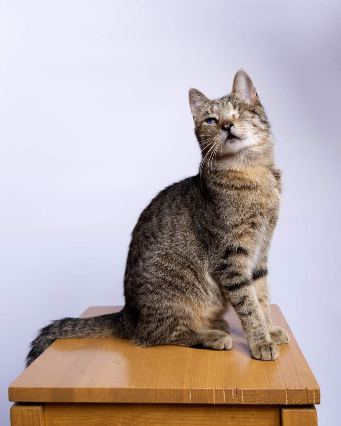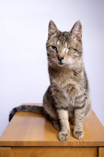 Trzy kocięta zostały znalezione pod Oleckiem, dzięki szybkiej reakcji Dobrej Duszy, udało się przynajmniej częściowo zachować wzrok u młodego Altaira. Właśnie ze względu na problemy z oczami, Altair trafił pod naszą opiekę – do Fundacji Ja Pacze Sercem.
