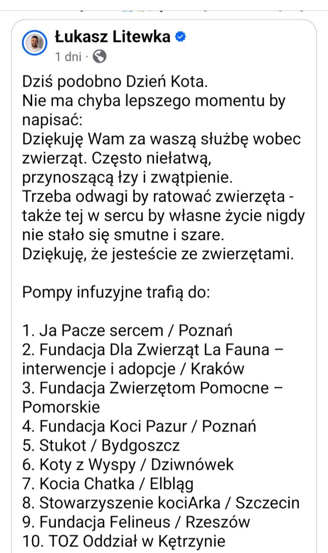 Dzięki niesamowitym wrażliwcom i serc czarodziejom 🦄🐈🐈⬛💛 dziś spełniają się marzenia kocich ratowników!!!!!!! Z okazji Światowego Dnia Kota aż 70 organizacji otrzyma w darze pompę infuzyjną, sprzęt niezwykle przydatny w kocim ratownictwie!!! Wśród szczęśliwców są i ślepaczki 😎☀️🥳 Jesteśmy zaskoczeni, niezwykle wzruszeni i przeszczęśliwi!!!!! Łukasz Litewka ❤️ - magu naczelny, dziękujemy, kochamy i ściskamy!!!!!!!!! Ja Pacze Sercem Blind Cat Rescue