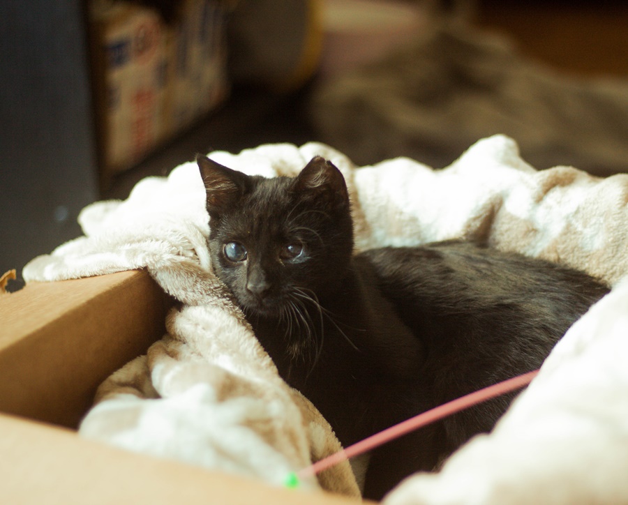 Jako porzucone kocie dziecko, Doris trafiła do schroniska w Kielcach, a stamtąd przyjechała do domu tymczasowego w Warszawie. Koci katar spowodował owrzodzenie obu rogówek, ale nie odebrał jej całkowicie wzroku. Doris ma ograniczone pole widzenia, ale z wprawą pumy potrafi wskoczyć na łóżko, drapak, bądź znaleźć swoje ulubione zabawki. I miseczkę! Jedzenie stanowi nieodzowną część życia tej małej koteczki. W końcu pumy muszą rosnąć! Doris jest typem kota-tuptusia. Tumpta wszędzie tam, gdzie dzieje się coś interesującego, zwłaszcza jeśli są tam Jej tymczasowi opiekunowie bądź koci bracia.