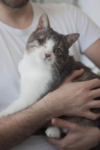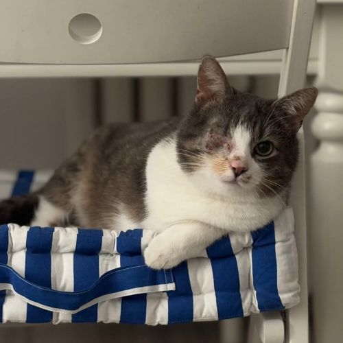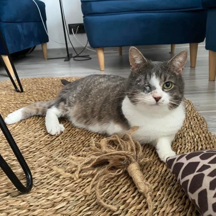 Kopytko urodził się około 2023 roku. Jest zaszczepiony, odrobaczony, testy FIV/FELV ujemne. Przeszedł zabieg enukleacji oczka, na drugie widzi nomalnie. Szukamy dla Niego domu niewychodzącego, z zabezpieczonymi oknami/balkonem. Potrzebuje domu bez innych kotów.