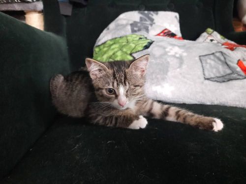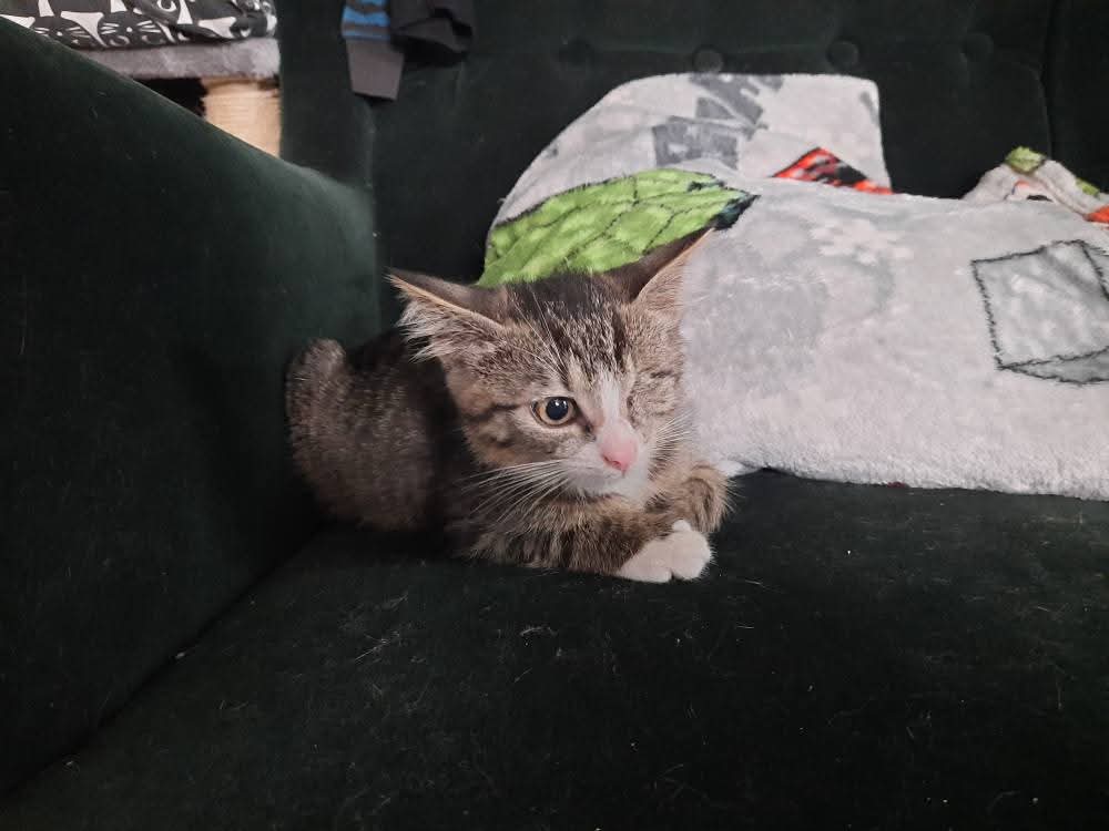 Bury jak mały tygrysek, z białymi łapkami i śnieżnym pyszczkiem, wygląda jak prawdziwy koci dżentelmen… a jego jedno oczko dodaje mu tylko jeszcze więcej uroku i charakteru. Ten mały pirat udowadnia, że brak drugiego oczka w niczym go nie ogranicza – wręcz przeciwnie, sprawia, że życie przeżywa z podwójną pasją. Kraken to wulkan energii. Zawsze gotowy do gonitw, polowań na piórka i wymyślania nowych psot, nigdy się nie nudzi.
