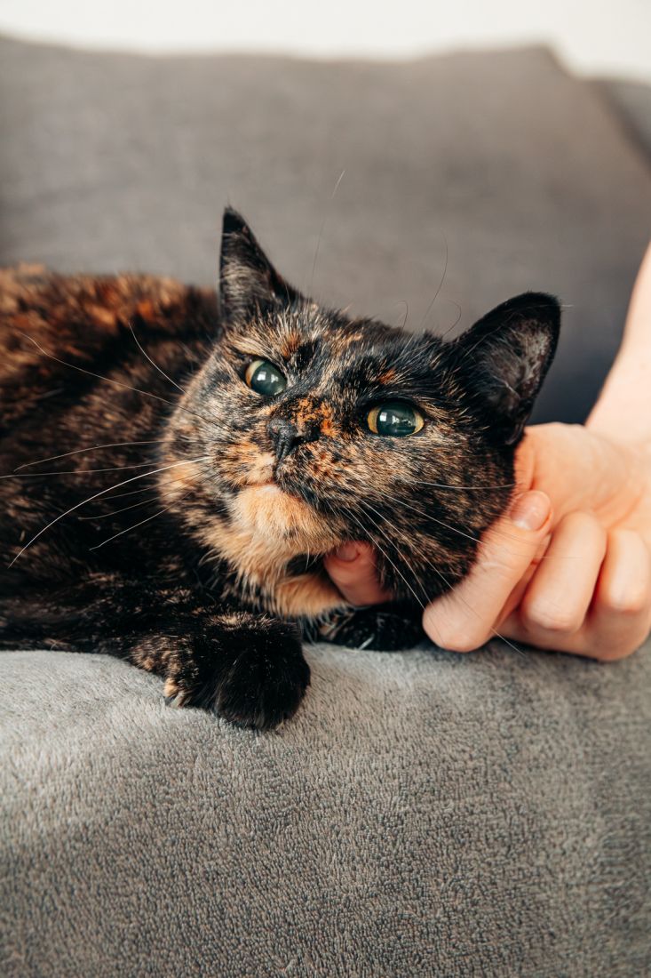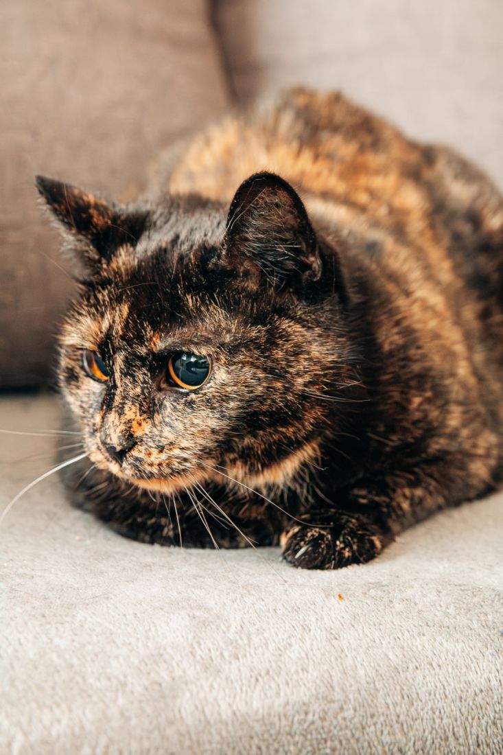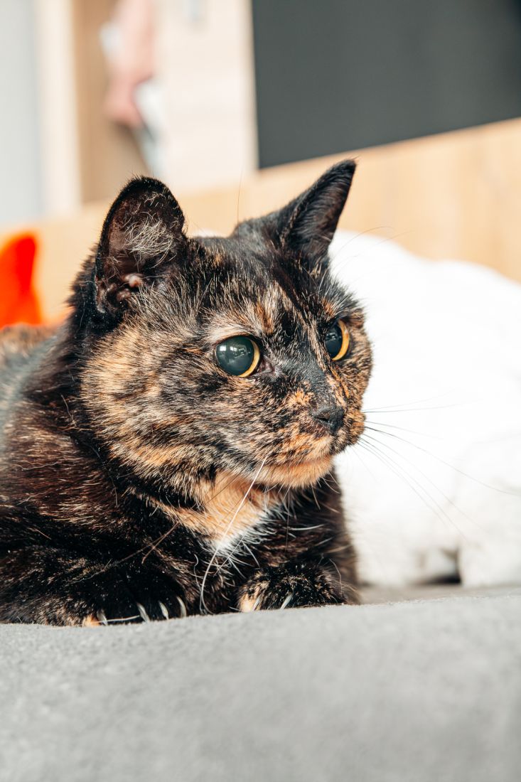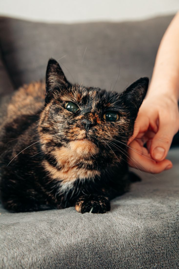 Lulu urodziła się w roku 2020. Jest zdrowa, zaszczepiona, wykastrowana, testy FIV/FeLV ma ujemne, ma chip. Nie widzi, a jej źrenice są permanentnie rozszerzone i wyglądają jak u kota ze Shreka.