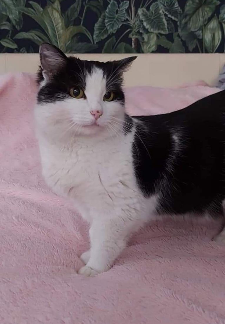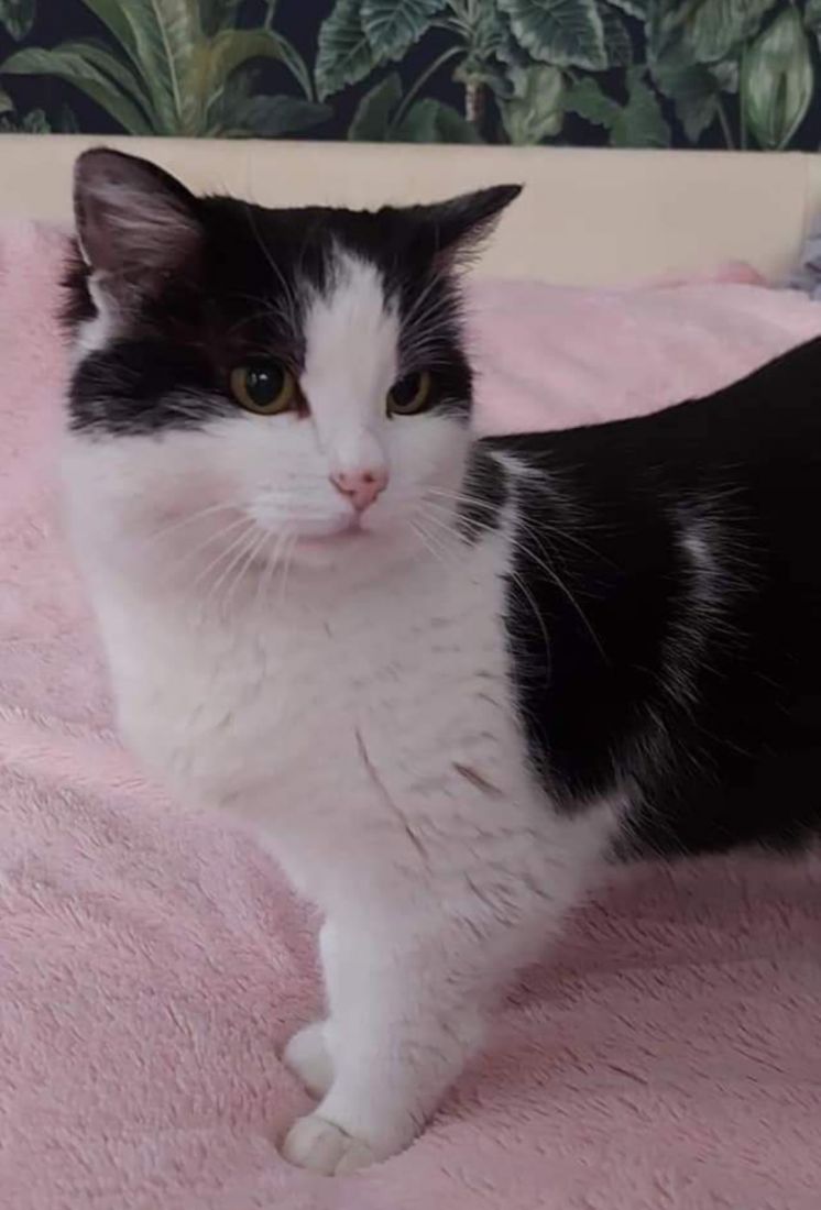 Jest zwierzęciem uratowanym z Ukrainy. Mieszkała tam sama w garażu. Przyjechała do nas cała w smarach, śmierdząca benzyną - czarna, brudna kulka strachu. Bała się ruszać, pić, jeść, chciała zniknąć, bo świat był dla niej zbyt przerażającym miejscem do życia. Postanowiliśmy jednak pokaząć jej, że istnieje inny świat poza nieszczęśliwą Ukrainą. Kiedy Mordeczka poczuła ciepło naszych rąk, spokój i miłość, zareagowała od razu. Okazała się kicią kochającą człowieka ponad wszystko. Wystarczy ją przytulić, a ona już rozpływa się z rozkoszy, mruczy, zasypia, wtula się całą sobą. Mordeczka jest zdrowa, ma 4-5 lat, ma chip, jest wysterylizowana, zaszczepiona, testy FIV/FeLV ma ujemne. Może więc szukać swojego domu na zawsze. Tylko czy ktoś pokocha ją tak samo mocno, jak ona kocha nas? Mordeczka ma spokojne i przyjazne usposobienie, ale nie czuje się dobrze w zbyt dużym stadzie zwierząt. Stresuje ją to. Wobec kotów jest zdecydowanie mniej “wylewna” niż w stosunku do człowieka. Psy są jej obojętne - o ile jej nie zaczepiają. Nic nie ma również do dzieci. Jakby nie było to przecież jej ukochani ludzie, tylko w wersji XXS� Mordeczka potrzebuje człowieka, który oprócz miłości, zapewni jej bezpieczeństwo, czyli dom “niewychodzący” z zabezpieczonymi oknami i balkonem. Przygarnij koteczkę z Ukrainy i stwórz jej świat pełen dobra i miłości!