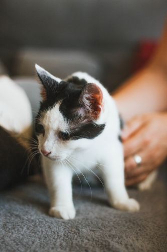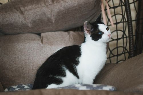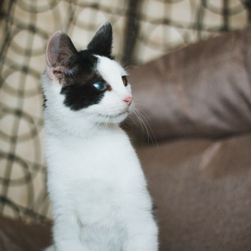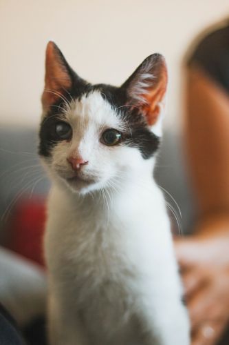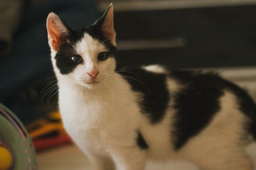 Mały Mucio jest jednym z tych szczęściarzy, którzy w Fundacji Ja Pacze Sercem- zajmującej się przecież kotami niewidomymi i niedowidzącymi – widzi! Wszystko dzięki szybkiemu i skutecznemu leczeniu. Choć na jego oczach pozostał ślad – lekki zez i widoczna trzecia powieka – jest to tylko wspomnienie chorób młodości.