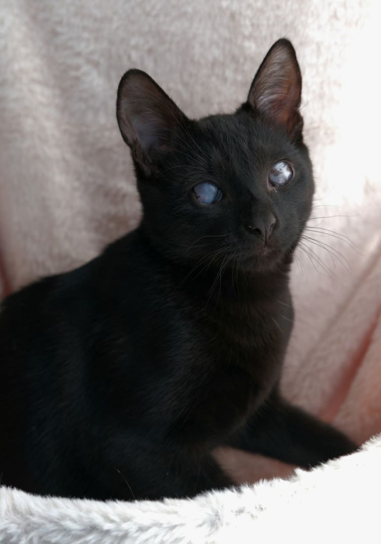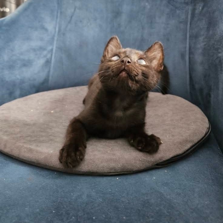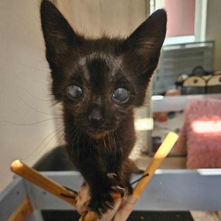 Uwielbia również ludzi – pierwszy wita w drzwiach swoją tymczasową opiekunkę, jest zawsze blisko niej, gotowy na pieszczoty. Największym szczęściem dla niego jest to, gdy nareszcie może wylądować w jej ramionach. Błogo mruczy, przymyka oczy i... już śpi. Bardzo to sprytne, tak swoją drogą (mleczną), bo jak wiadomo, wedle zasady „nie mogę, kot na mnie leży”, śpiącemu kotu nie wolno przeszkadzać. Sławosz pojawił się w naszej galaktyce w czerwcu 2025 roku. Jest zdrowy, zaszczepiony, ma chip, testy FIV/FeLV ujemne, w domu „na zawsze” będzie wymagał wykastrowania. Nie widzi, ale pomimo to radzi sobie doskonale.