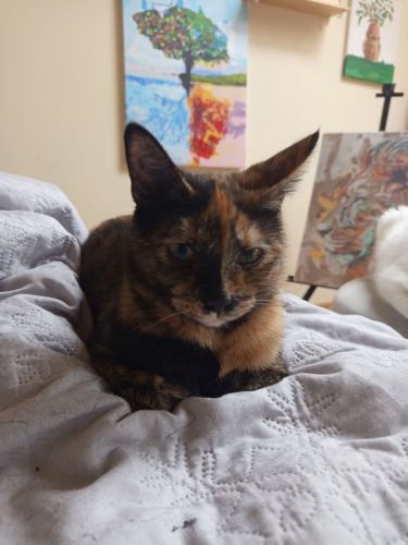 Owszem potrzebuje bliskości człowieka, ale bez noszenia na rękach czy ciągłego przytulania. No, chyba że sama przyjdzie po porcję głaskania. Taka już jest i nie wiemy, z czego to się bierze – czy to wina przeżyć, czy może taka jest jej szylkretowa natura. Jest za to kochającą i czułą współtowarzyszką dla innych zwierząt w potrzebie. W domu tymczasowym naszej fundacji Ja Pacze Sercem przyjaźni się zarówno z kotami, jak i z psami – przytula, wylizuje, trąca nosem, jakby sprawdzała, czy wszystko u nich dobrze. Solidarność ze zwierzętami po przejściach? To pewnie zbytnia antropomorfizacja. A może i nie. Tak czy inaczej Szumi ma bagaż przeżyć i szuka kogoś, kto to zrozumie.