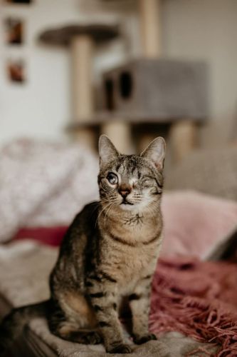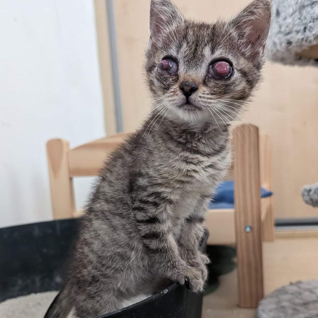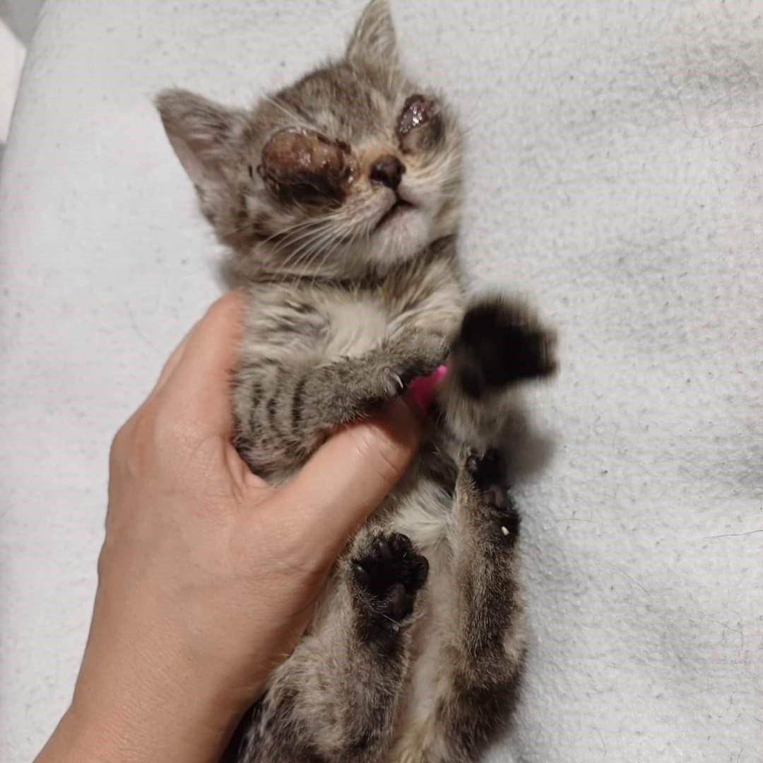 Jedno oko trzeba było usunąć. Drugie udało się uratować, drugim widzi ruch oraz światłocienie. Część zębów zostało wyrwanych. Czmychnęła także śmierci, wygrywając z kaliciwirozą. A mając przeciwciała tej choroby, oddała krew na surowicę dla innego kociaka, który potrzebował ratunku. Wszystko to – cały ogrom cierpień związanych z samotnością bezdomności, chorobami wynikającymi z wiecznego osłabienia głodem i strachem oraz bólem, a także bohaterski czyn - wydarzyło się zanim wkroczyła w dorosłość. Bo Tola to jeszcze kocie dziecko. Skończy rok dopiero w sierpniu. Całkiem sporo, jak na jednego małego buraska, prawda?